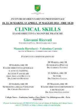 10 marzo - 25 maggio 2023 - Clinical Skills