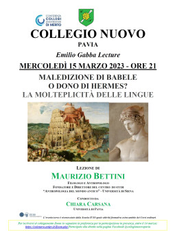 15 marzo 2023 - Maledizione di Babele o dono di Hermes? La molteplicità delle lingue Emilio Gabba Lecture