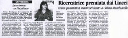 Nel 2006 Chiara è insignita del Premio dell’Accademia Nazionale dei Lincei “Maria Teresa Messori Roncaglia e Eugenio Mari” per i risultati ottenuti nelle sue ricerche in ambito di teoria quantistica dell’informazione, calcolo quantistico e comunicazione quantistica.