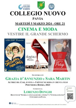 Torna al Collegio Nuovo la giornalista di moda, prima direttrice di “Glamour” e già vice direttore di “Vogue Italia”, Grazia d’Annunzio, oggi docente alla Statale di Milano: con lei, per la prima volta al Nuovo, Sara Martin, professoressa associata all’Università di Parma, studiosa dei rapporti tra il cinema e le altre arti, in particolare attenta agli aspetti di costume e scenografia.