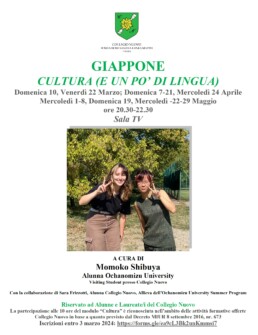 Sara Frizzotti, alunna del Collegio Nuovo, partecipa in luglio all’Ochanomizu Summer Program a Tokyo e accoglie al Nuovo in settembre la nuova visiting student da Tokyo, Momoko Shibuya. In Collegio cresce l’interesse per la lingua e la cultura giapponese. E allora insieme progettano un corso su misura.