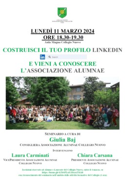 Iscrizione riservata alle Alunne e Laureate del Nuovo (entro il 10 marzo 2024) – con riconoscimento del seminario nell’ambito delle attività formative del Collegio