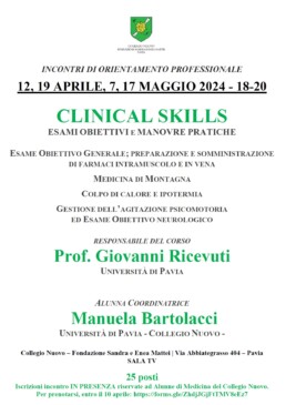 Torna, ancora con la supervisione del Prof. Giovanni Ricevuti, il ciclo di Clinical Skills, coordinato dalla nostra laureanda in Medicina, Manuela Bartolacci.