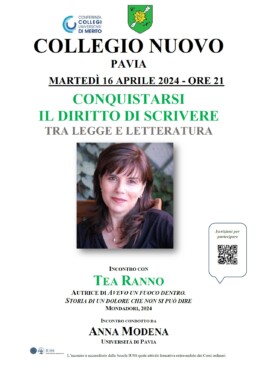 L’incontro si tiene solo in presenza (Aula Magna del Collegio Nuovo, v. Abbiategrasso 404, Pavia), con registrazione entro il 2 maggio.