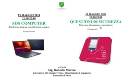 Due appuntamenti con l’ing. Roberto Marmo: il primo (15 maggio, ore 21 – in presenza) per risolvere i problemi più comuni con il computer; il secondo (20 maggio, ore 21 – on line) per proteggere i propri dispositivi, dal personal computer allo smartphone.