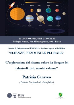 Mercoledì 26 giugno 2024 (ore 21) torna al Collegio Nuovo, nell’ambito della Scuola di Orientamento IUSS, Patrizia Caraveo, astrofisica (INAF – Istituto Nazionale di Astrofisica, Milano), Commendatore dell’Ordine al Merito della Repubblica Italiana e Women in Aerospace – Outstanding Achievement award 2014.