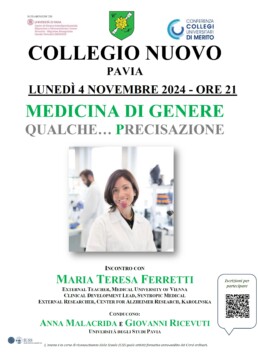 Proprio su quest’ultimo tema, legato anche alla Medicina di precisione, la prof. Ferretti interverrà in un incontro condotto dai prof. Anna Malacrida (Presidente della Fondazione Sandra e Enea Mattei) e Giovanni Ricevuti (Coordinatore del corso a libera scelta sull’Alzheimer promosso dal Collegio e accreditato dall’Università di Pavia).