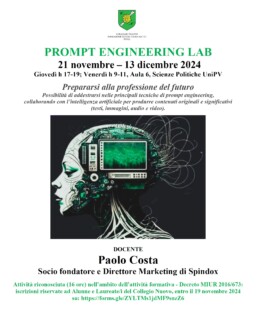 Si parte il 21 novembre con il “Prompt Engineering Lab”, sempre con Paolo Costa, socio fondatore e direttore marketing di Spindox .