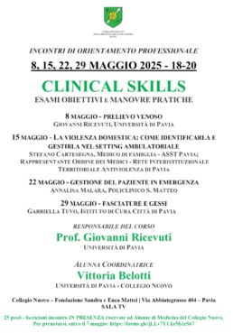 Ciclo riservato alle Alunne di Medicina del Collegio Nuovo, a cura del Prof. Giovanni Ricevuti e con il coordinamento dell’Alunna Vittoria Belotti, studentessa di Medicina.
