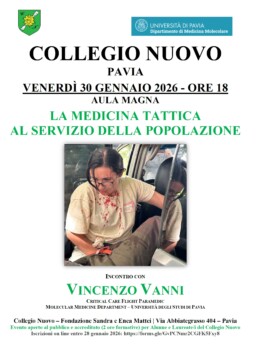 Vincenzo Vanni, Critical Care Flight Paramedic, già docente in alcuni corsi interni per la comunità collegiale organizzati dal Prof. Giovanni Ricevuti, torna al Nuovo in un incontro aperto al pubblico programmato per il 30 gennaio 2026, ore 18 in Aula Magna. Parlerà di “Medicina tattica al servizio della popolazione”, tema su cui ha pubblicato anche un manuale.