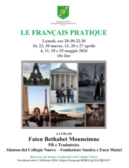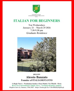 20 ore di lezione riservate ai studenti internazionali della Sezione laureati del Collegio Nuovo, con un docente di ampia esperienza in Istituti italiani di cultura all’estero come Alessio Banzato.