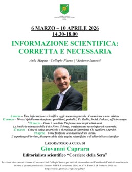 Torna Giovanni Caprara, editorialista scientifico del “Corriere della Sera“, storico dello spazio insignito del prestigioso Premio Luigi Broglio, a tenere il Laboratorio di competenze trasversali “Informazione scientifica: corretta e necessaria“.