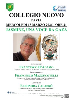 Alla testimonianza realistica di Jasmine – una voce tuttavia immaginata da Gaza –, è dedicato l’incontro che si terrà mercoledì 18 marzo alle ore 21 al Collegio Nuovo. Protagonisti della serata sono lo scrittore Francesco D’Adamo, Premio Strega ragazze e ragazzi 2022, Premio Andersen 2023, che ha recentemente pubblicato Volevo avere le ali. Jasmine, 12 giorni a Gaza (Giunti, 2026) e Francesco Mazzucotelli, profondo conoscitore di storia e cultura del Medio Oriente. Un’occasione per entrare nel vivo nell’attualità di Gaza, grazie allo sguardo di uno scrittore che ama raccontare storie vere, capaci di spiegare il mondo, ponendosi dalla parte dei più fragili e dei loro diritti. Il suo Storia di Iqbal, ispirato a una storia vera di sfruttamento minorile di un bambino pakistano diventato un simbolo della lotta contro il lavoro infantile, è stato tradotto in tutto il mondo.