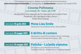 Promossa da Comune di Pavia e STEAMiamoci, nel quadro di Pavia Capitale della Cultura d’Impresa 2023, in collaborazione con LabTalento, Soroptimist, Collegio Nuovo e Assolombarda. La Rassegna propone tre appuntamenti con role models e testimonial STEAM, tra cui le Alunne Elena Fede e Maria Clara Corda, intervistate da Anna Carmassi, project leader di STEAMiamoci.