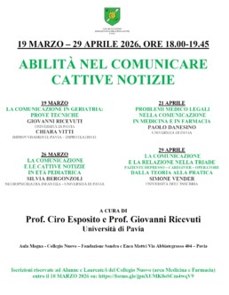L’aspetto più difficile della comunicazione medico-paziente: dover dare una “cattiva notizia”, una diagnosi di una malattia da cui non si può guarire, la prognosi di un tempo di vita restante troppo breve, la necessità di un intervento urgente e delicato. E poi, come farlo, con persone con fragilità legate anche a una età precoce o molto avanzata? Come trattare con i famigliari e caregiver? Quattro incontri per provare a fornire qualche risposta.