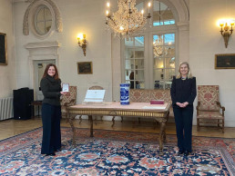 Nel 2020 è nominata Cavaliere (“Ordine della Stella d’Italia”) dal nostro Presidente della Repubblica su proposta del Ministro degli Affari Esteri (nella foto, sopra, con l’Ambasciatrice Elena Basile).
