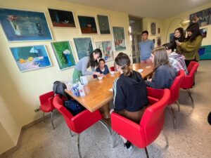 Sabrina: L’incontro è iniziato con una loro presentazione: molto piacevole, non solo per le modalità (un power point e un fascicolo stampato!) ma anche per gli oggetti fisici che ci avevano portato. Una ragazza, ad esempio, con la passione per la scrittura degli ideogrammi, ci ha mostrato il pennino e l’inchiostro con cui faceva le gare di scrittura; Hana, appassionata di tè matcha, ci ha preparato sul momento del tè con dei dolcetti.